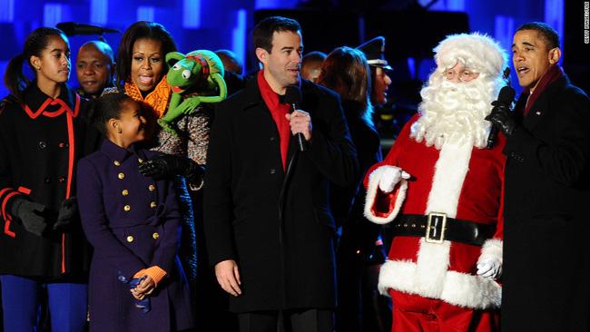 15. Gia đình Tổng thống Obama cùng hát vang tại lễ thắp sáng cây thông Noel, tháng 12/2011.