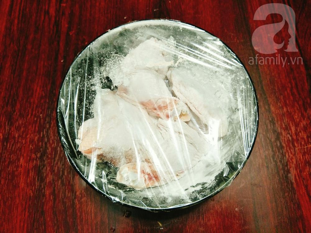 Sau 20 phút bạn cho bột năng vào bát cánh gà và xóc đều cho cánh gà bám đều 1 lớp mỏng bột.