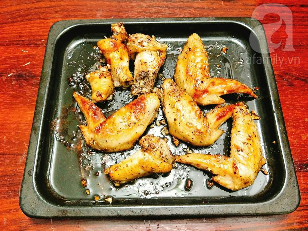 Nướng như vậy cho tới khi 2 mặt cánh gà chín vàng đều là có thể lấy ra thưởng thức ngay khi còn nóng sẽ ngon hơn.