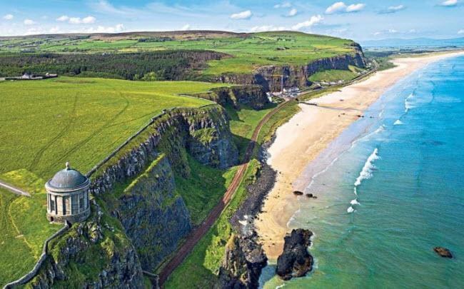 Đền Mussenden: Bãi biển Downhill Strand nhìn lên ngôi đền Mussenden ở Bắc Ireland là địa điểm được nhân vật Stannis Baratheon thường xuyên tới thăm trong phim "Game of Thrones".