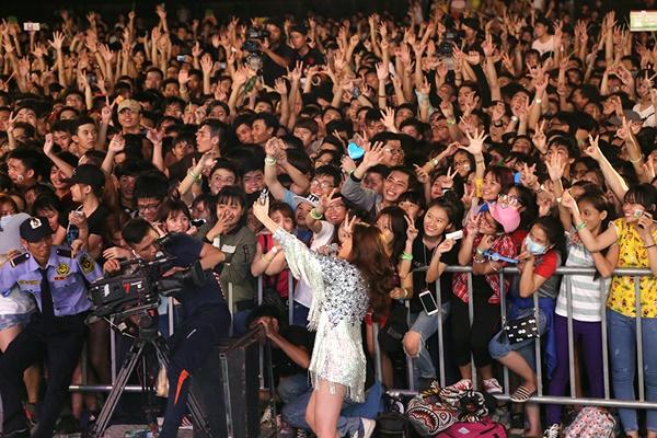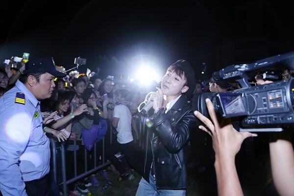 Hàng chục ngàn sinh viên như muốn phá rào để được gặp thần tượng của mình là Hoàng Thùy Linh và Sơn Tùng