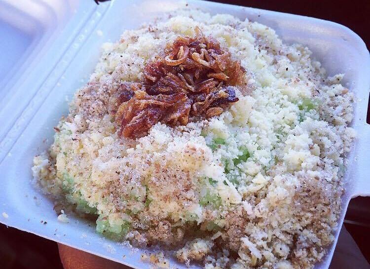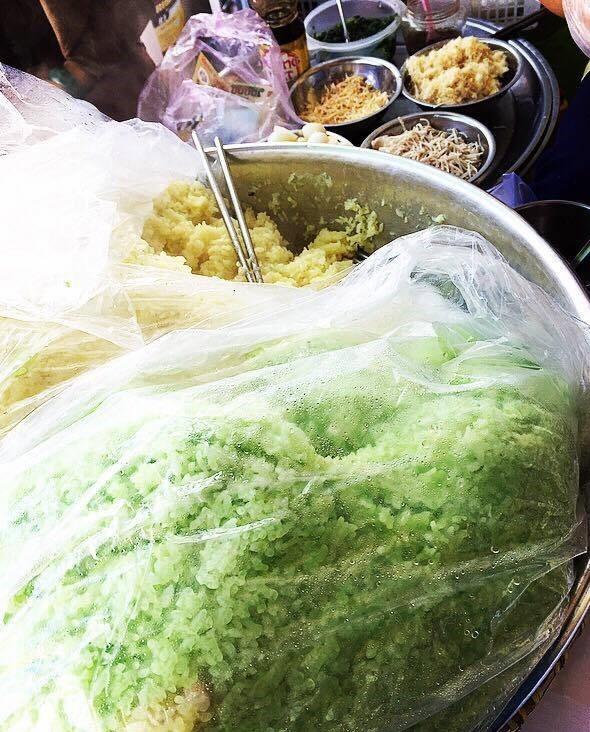 Lang thang trong chợ đến tận khuya, tôi tìm được một quán xôi lá nếp rất thơm ngon..