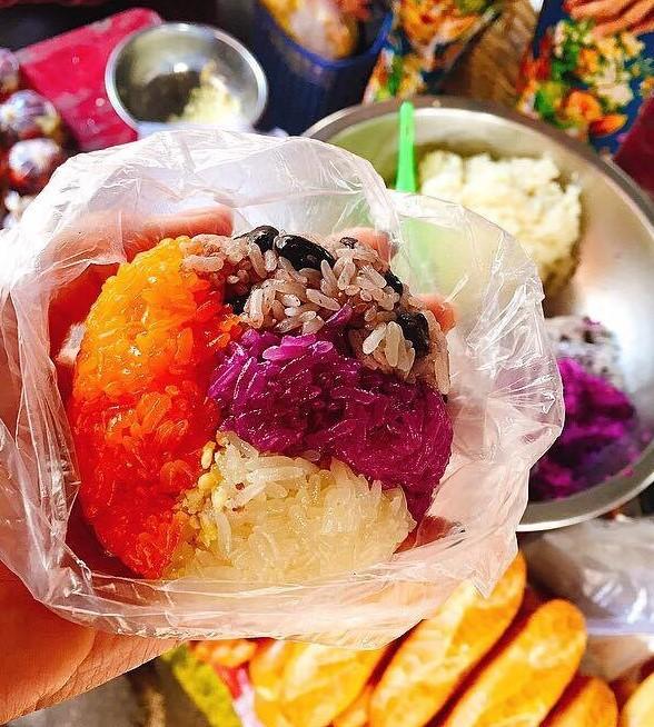 Xôi ngũ sắc rất bắt mắt khiến tôi không thể kìm lòng. Thế là tôi đã có một buổi tối no nê, hứa hẹn sẽ có một giấc ngủ ngon.