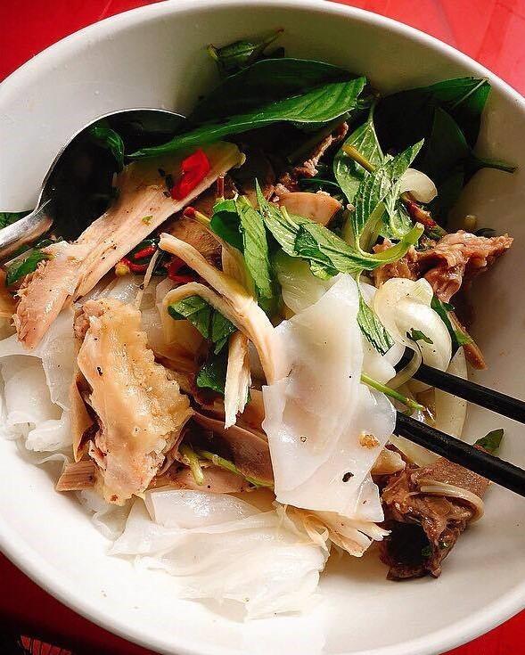 Lang thang một vòng quanh hồ Xuân Hương để ngắm cảnh, buổi trưa tôi lại quay trở lại đường Tăng Bạt Hổ để thưởng thức món bánh ướt lòng gà nổi tiếng. Bánh ướt được rưới nước mắm chua ngọt đậm đà, khi ăn trộn đều với gà, rau thơm, lòng là có thể thưởng thức. Thịt gà mềm dai, ăn cùng lòng thơm ngon lại lạ miệng.