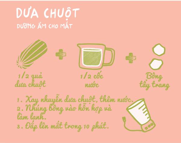Mặt nạ dưa chuột cung cấp độ ẩm cần thiết, giảm thiểu độ căng nhức cho mắt và vùng da xung quanh mắt, khiến khu vực da này trở nên mịn màng hơn.