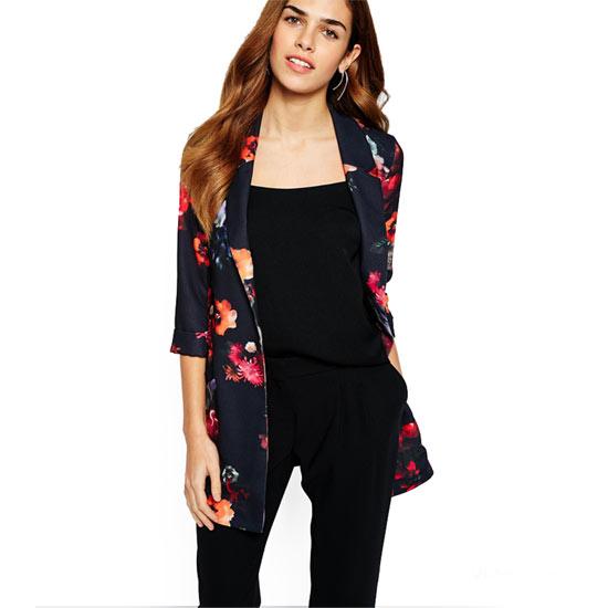 Áo khoác blazer là danh từ gợi cho phái đẹp nhiều hứng khởi. Đây là xu hướng thời trang đề cao sự trẻ trung, thanh lịch được các ngôi sao Hàn Quốc vô cùng ưa chuộng. Với thiết kế đơn giản, duyến dáng, áo khoác blazer là thực sự phù hợp để kết thân cùng váy liền mềm mại. Chị em sẽ trở nên thời trang và năng động hơn nếu đi làm cùng set quần jeans, áo thun có khoác ngoài blazer xanh navy in hoa nổi bật. Chưa hết, tính ứng dụng của món trang phục này còn thể hiện ở chỗ: chúng giúp tiết chế sự gợi cảm của mọi chiếc váy sexy, nóng bỏng mùa hè.