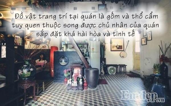 Những vật dụng trang trí từ gốm, thổ cẩm, bộ bàn ghế gỗ, hay căn gác xép vẫn còn lưu giữ dấu ấn của thời gian khiến ai cũng có cảm giác như tìm lại được một Hà Nội xưa cũ nhẹ nhàng và an yên.