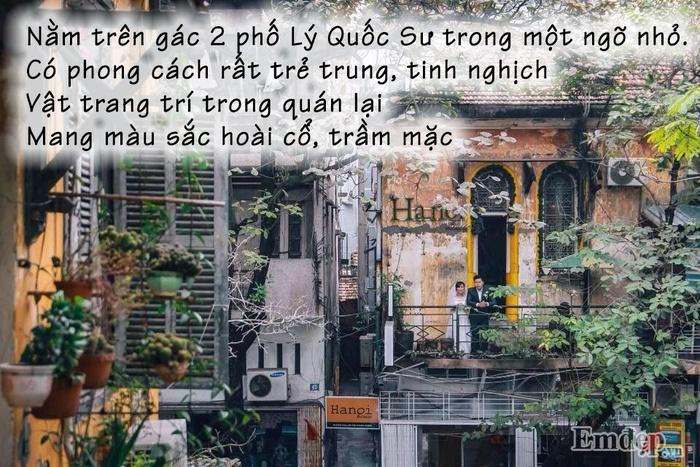 Muốn tìm ra chất Hà Nội thì không thể bỏ qua việc len lỏi vào những ngõ nhỏ để nghe mùi thời gian lãng đãng trên từng bức tường, từng cánh cửa cũ kĩ. Bạn cũng có thể tìm đến một quán cà phê nhỏ ẩn mình trong những ngôi nhà phủ màu rêu phong như quán nằm trên con phố Lý Quốc Sư này.