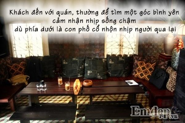 Muốn ngắm phố phường thì ra ngoài ban công, hay muốn riêng tư thì lên gác xép, còn không bạn có thể ngồi ngay gian phòng chính để thỏa thích ngắm những đồ vật trang trí khá lạ và độc.