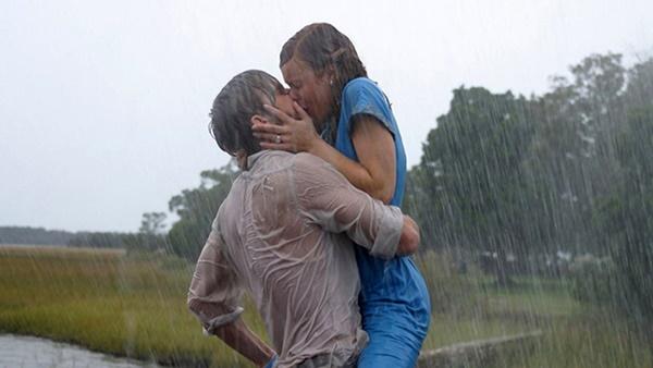 Noah và Allie hôn nhau say đắm dưới mưa.
