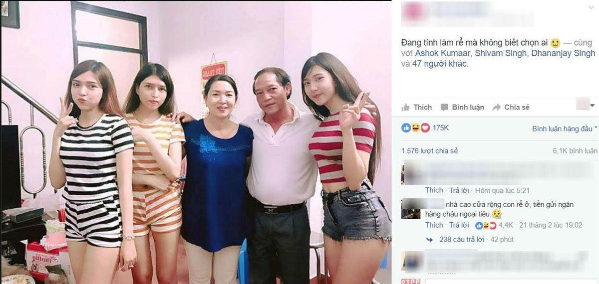 Được chia sẻ trên một Fanpage giới trẻ từ ngày 21/2, hình ảnh 3 cô gái xinh đẹp như hoa, dáng người cao ráo đứng bên cha mẹ nhận được hơn 175 nghìn lượt thích, hơn 1,5 nghìn lượt chia sẻ.