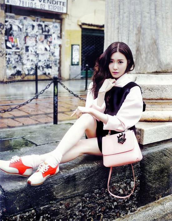 Tiffany Tiffany là một trong những thành viên ăn mặc đẹp nhất nhóm nhạc SNSD. Phong cách của cô nàng mắt cười đẹp nhất xứ Hàn vô cùng đa dạng từ cá tính, nữ tính cho tới nổi loạn. Tất cả đều được cô phối một cách hoàn hảo không có gì để chê. Áo khoác bomber là một trong những hot trend. Nữ ca sĩ thật cá tính khi kết hợp với jeans rách gối cùng giày sneaker năng động. |