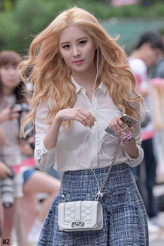 Seohyun là em út dịu dàng nữ tính nhất trong đại gia đình SNSD. Phong cách thời trang của Seohyun thiên về sự cổ điển lãng mạn. Cô nàng thường chọn cho mình những bộ váy midi mang hơi hướng châu Âu hoặc những chiếc váy xòe vô cùng dễ thương.