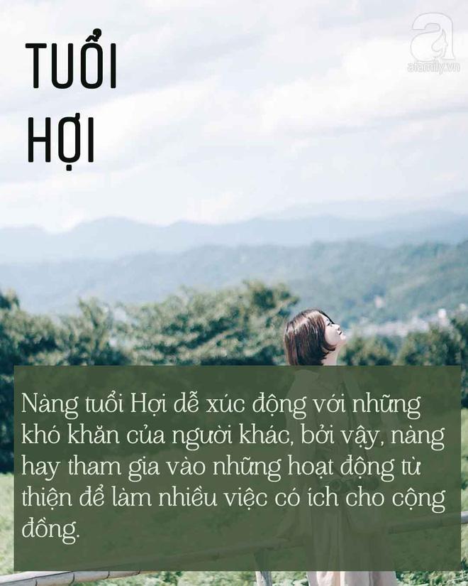 Tuổi Hợi là những người có lòng trắc ẩn, nhân ái và yêu thương mọi người. Nàng tuổi Hợi dễ xúc động với những khó khăn của người khác, bởi vậy, nàng hay tham gia vào những hoạt động từ thiện để làm nhiều việc có ích cho cộng đồng. Bên cạnh đó, những cô nàng tuổi Hợi luôn tỏ ra nhẹ nhàng, nhu mì, ngay cả khi tức giận, họ cũng chẳng bao giờ to tiếng hay hét vào mặt người khác.