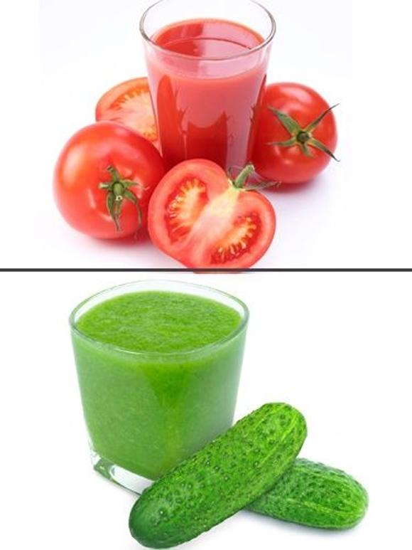 - Trộn nước ép cà chua và nước ép dưa chuột theo tỷ lệ tương đương nhau