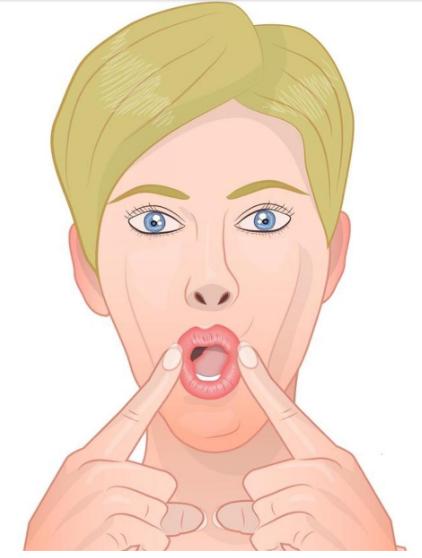 - Mỉm cười, lấy 2 ngón trỏ miết nhẹ theo đường 2 khóe miệng để làm giãn các cơ.
