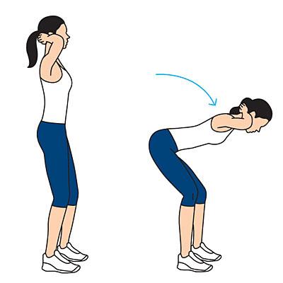 Trở về tư thế đứng như trước và lặp lại 10-12 lần.