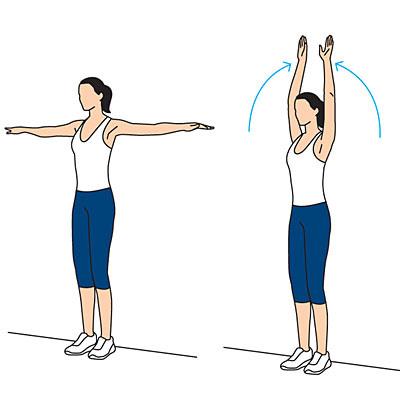 Giơ tay song song với sàn nhà. Giữ cánh tay và lưng áp sát vào tường. Từ từ xoay cánh tay lên cao hết sức có thể, sau đó hạ xuống vị trí bắt đầu. Lặp lại 10-12 lần như vậy.