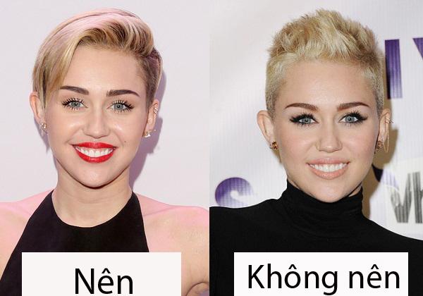 Nếu cắt tóc ngắn như hình bên phải, khó ai nhận ra Miley Cyrus là một cô gái.