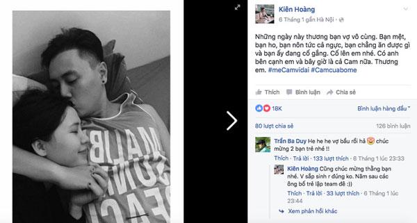 Nếu có theo dõi Facebook của đôi vợ chồng hot teen này, chắc chắn bạn sẽ bị ấn tượng bởi những hình ảnh và bài viết tình cảm, ngọt ngào vô cùng mà Kiên Hoàng dành cho Heo Mi Nhon. Từ ngày vừa biết tin có bầu, cho tới khi Heo Mi Nhon nghén, và bây giờ là đã chuẩn bị sinh, Kiên Hoàng lúc nào cũng tỏ ra mình là một anh chồng cực tâm lý và chu đáo.