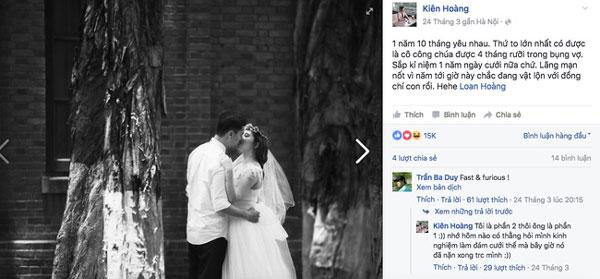 Những dòng status ngọt ngào Kiên Hoàng viết cho vợ.