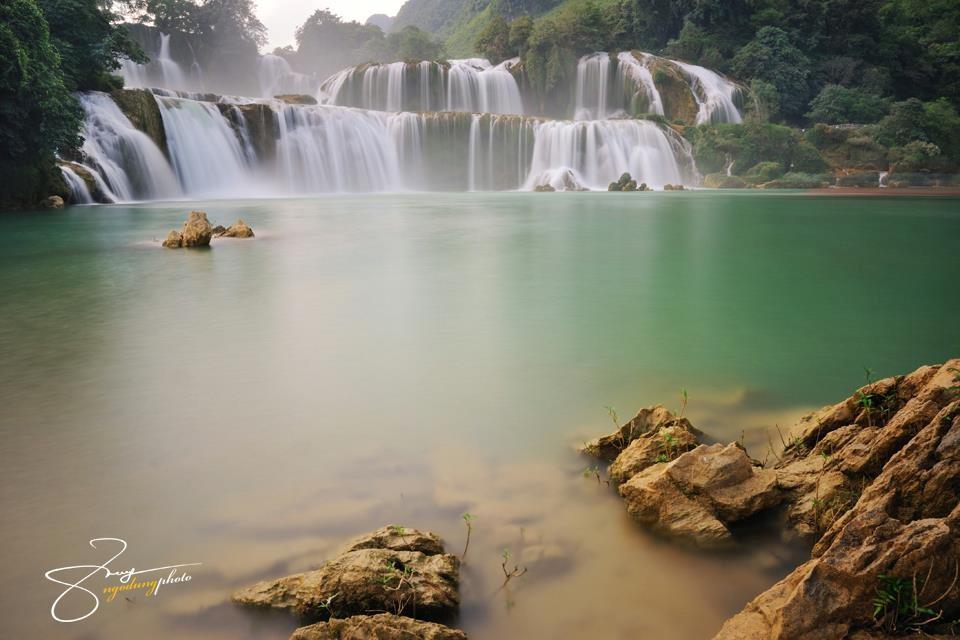 Thác Bản Giốc: Thác Bản Giốc thuộc tỉnh Cao Bằng, nằm trên đường biên giới giữa Việt Nam và Trung Quốc. Dòng thác trắng giữa không gian xanh tươi và hùng vĩ tạo khung cảnh đẹp như tranh vẽ.