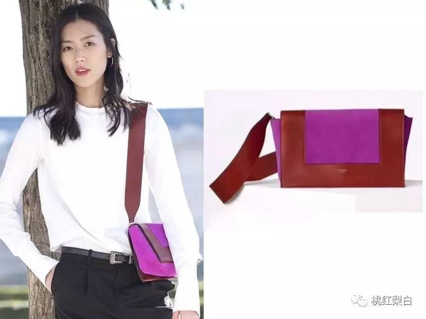Mẫu túi Celine phối màu nổi bật được Liu Wen kết hợp với trang phục màu tối giản để làm điểm nhấn. Chiếc túi có giá khoảng 62,5 triệu đồng