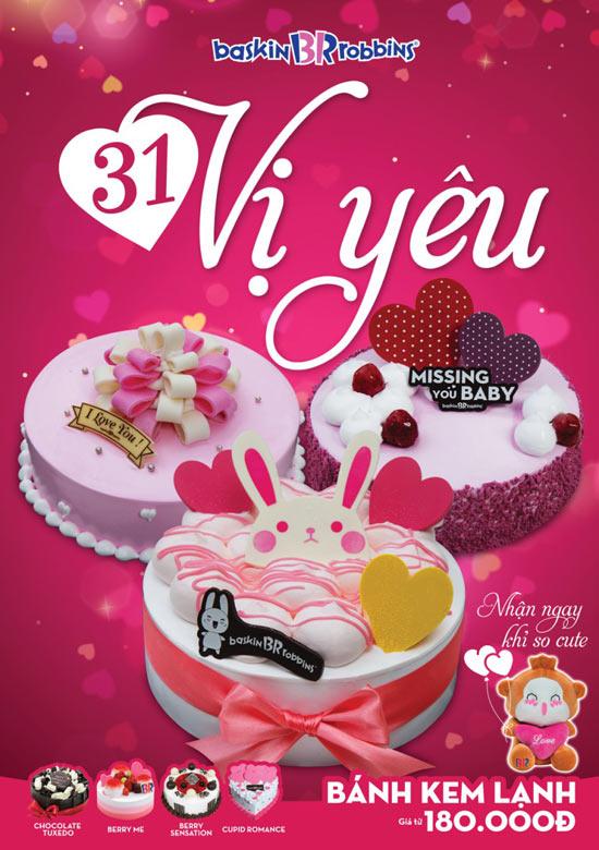 Hãy đến ngay cửa hàng Kem 31 mùi gần nhất để nhận được ưu đãi hấp dẫnchỉ từ 180.000đ cho bánh kem lạnh Valentine lãng mạn nhé.