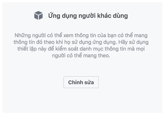 Nếu đã tắt tùy chọn Disable Platform (vô hiệu hóa nền tảng) thì tính năng chia sẻ dữ liệu cũng sẽ bị tắt và ngược lại. Đầu tiên, bạn hãy vào Settings (cài đặt) > Apps (ứng dụng) > Apps others use (ứng dụng người khác dùng) > Edit (chỉnh sửa).