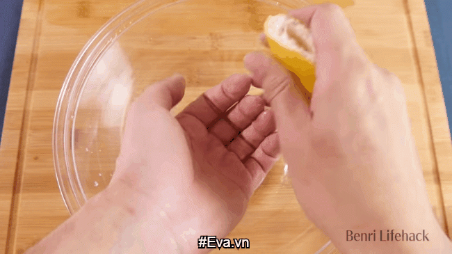 Sau đó, hai tay xoa vào nhau, xoa cả móng và các kẽ tay cho mùi tanh bay mất.