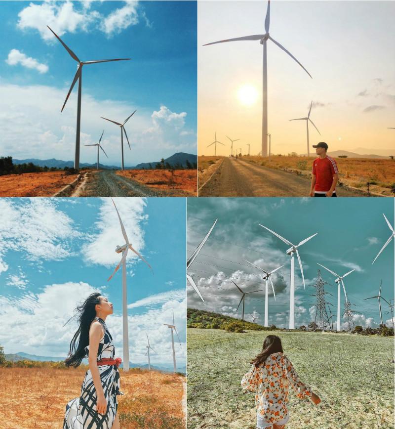 Sức hút mạnh mẽ của tọa độ sống ảo này là các trụ xoay gió với những cánh quạt to nối dài nhau nằm giữa thiên nhiên rộng lớn, tạo nên "background" tuyệt đẹp cho mỗi khung hình.