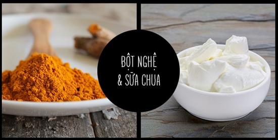 Sự kết hợp giữa bột nghệ và sữa chua được cho là có tác dụng trị sẹo rất hiệu quả. Trộn 1 thìa cà phê bột nghệ với 1 thìa canh sữa chua để tạo thành hỗn hợp nhão. Thoa nhẹ hỗn hợp này lên vùng da bị sẹo do mụn để lại. Để trong 15 phút trước khi rửa sạch bằng nước hơi ấm. Đắp hỗn hợp này ít nhất 1 lần, bạn sẽ thấy hiệu quả trị sẹo mụn kỳ diệu của nó.