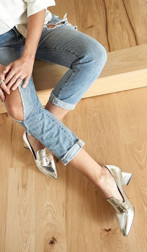 Sự tinh tế và thanh lịch quá đỗi ngọt ngào của Kitten heels giúp nó lọt vào danh sách dự đoán những đôi giày hot nhất 2017. Tất nhiên, nó cũng là một trong những cái tên nổi bật nhất khi sánh đôi cùng jeans giúp các nàng tỏa sáng trên phố.