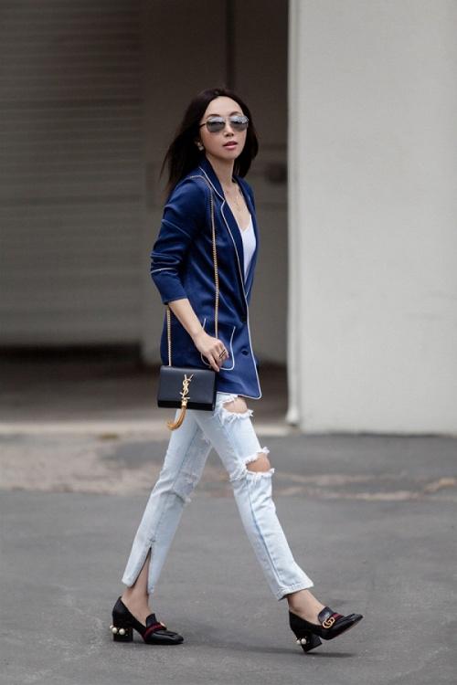 Những đôi giày loafers đế cao đậm hơi thở retro mix cùng jeans bụi bặm sẽ là sự kết hợp hoàn hảo để có set đồ vừa hoài cổ, vừa thời thượng.