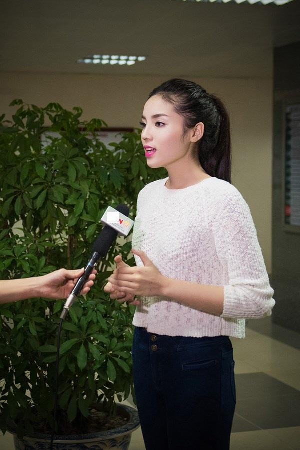 Kỳ Duyên xinh đẹp với mái tóc dài, uốn đuôi nhẹ.