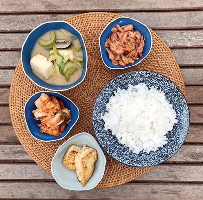 Những bữa cơm gia đình cũng được Hà Tăng chỉn chu, bày biện sắp xếp trông rất ngon mắt.