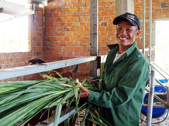 Anh Nguyễn Văn Thụ, một trong năm người bị oan, sẽ tiếp tục công việc cắt cỏ nuôi bò của mình. Ảnh: N.NGA