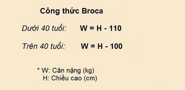 Công thức 4: Broca Index. Đây là một trong những phương pháp phổ biến nhất để tính toán tỷ lệ trọng lượng/chiều cao khỏe mạnh. Giá trị kết quả của công thức trên sẽ giảm đi 10% với những người có xương nhỏ (asthenic), và tăng thêm 10% đối với những người xương to (hypersthenic). Để xác định loại hình cơ thể, bạn chỉ cần đo chu vi phần cổ tay nhỏ nhất.