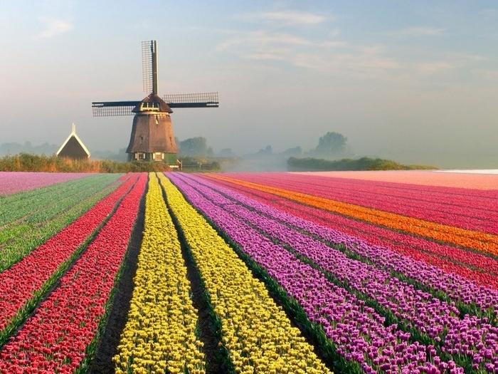 Dù ở cánh đồng hoa ở Amsterdam Keukenhof Gardens hay ở vùng nông thôn Hillegom hay Warmond, hoa tulip vẫn luôn khoe sắc quyến rũ và tuyệt đẹp. Việc xây dựng thêm những chiếc cối xay gió khiến cánh đồng hoa tulip càng thêm mộng mơ và toàn bích.