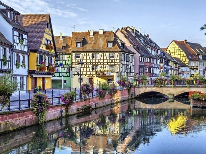 Walt Disney chắc chắn cũng sẽ mê mẩn khi đến ngôi làng Colmar, với những ngôi nhà gỗ, những giàn hoa đầy màu sắc trước cửa nhà và những kênh đào cũng được phủ kín sắc thắm của những bông hoa tươi.