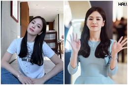 Tóc lửng là gợi ý đáng lưu tâm dành cho những nàng không thích cắt tóc quá ngắn, cũng không muốn để tóc dài. Kiểu tóc này giúp chị em tiết kiệm thời gian gội sấy, đặc biệt hữu ích trong mùa lạnh sắp tới. Khi áp dụng kiểu tóc lửng, tông màu trầm, Song Hye Kyo có được vẻ ngoài dịu dàng, thanh lịch. Bên cạnh đó, tóc lửng cũng mang đến nét ngọt ngào và tươi trẻ cho chính chủ.