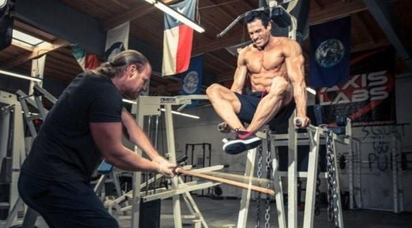 Để bài tập bench press boost diễn ra trơn tru, có một lời khuyên cho bạn là nên tập dips trước. Khi tập dips thường xuyên và tăng dần cường độ, bạn mới có thể đủ sức để nâng thanh xà với 5 đĩa tạ hai bên.
