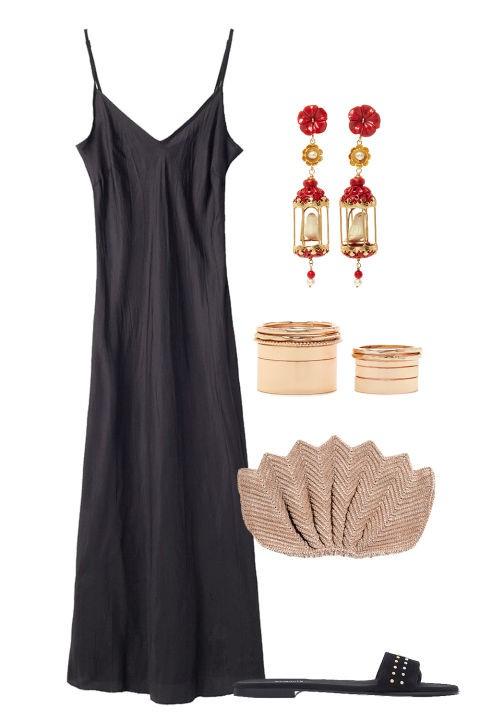 Đầm lụa, trang sức lấp lánh và dép cùng tông chính là bí quyết tạo nên vẻ ngoài