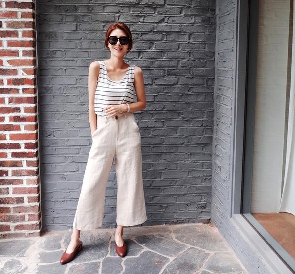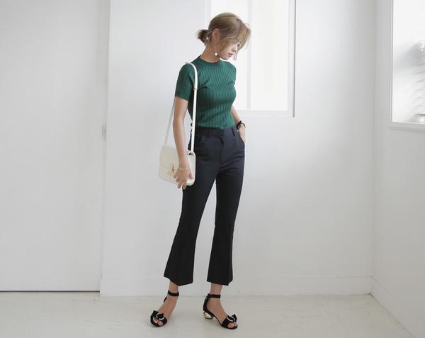 Đối với những quý cô lưng dài chân ngắn, những món đồ cạp cao là sự lựa chọn tối thượng! Dù là quần jeans, quần lửng, quần cuttlote, hay chân váy các loại… đồ cạp cao sẽ khiến đôi chân dài ra và tỉ lệ cơ thể của bạn cân đối hơn bao giờ hết. Chúng còn khiến người đối diện chú ý tới phần trên của trang phục thay vì bên dưới. Hãy ưu tiên những kiểu áo dáng ngắn như croptop, hay sơ vin áo sơmi để lộ rõ phần cạp cao tới ngang eo. Đối với chân váy midi, váy xếp li, váy chữ A, chú ý không nên lựa chọn những chiếc váy có đai quá to. Điều này sẽ càng nhấn mạnh hơn vào khuyết điểm lưng dài của các quý cô.