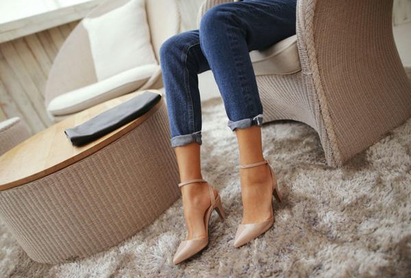 Hiển nhiên rằng những đôi giày cao gót sẽ khiến bạn trở nên cao hơn, đặc biệt với những quý cô có lưng dài. Sử dụng giày tông màu nude cũng là một mẹo nhỏ đánh lừa thị giác để chân bạn dài hơn. Nếu bạn e ngại đi những đôi giày cao gót thật bất tiện, hãy thử những đôi giày đế thô. Chúng không chỉ vô cùng thoải mái và tiện dụng mà còn có thể trở thành điểm nhấn cho cả bộ trang phục.