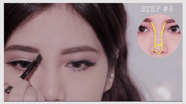 Với vài thủ thuật trang điểm nhỏ, bạn có thể tạo cảm giác mắt một mí sâu và mũi cao hơn. Sử dụng phấn tạo khối theo 2 bước, đánh phấn dọc hai bên sống mũi và kéo lên góc trong của mắt, phần ngay dưới đầu xương chân mày. Bạn nên chọn phấn tạo khối có màu nâu ngả ghi – nâu tông lạnh để phần tạo khối trông tự nhiên nhất.
