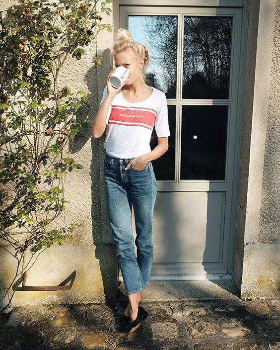 Biên tập viên thời trang Kat Collings chia sẻ bà mặc quần Vintage jeans ít nhất 3 lần mỗi tuần, đủ để thấy bà ưu ái món đồ này đến thế nào. Chiếc quần được may đúng chuẩn Vintage jeans có phần cạp cao và ống quần loe nhẹ, là ''vũ khí'' tuyệt vời giúp kéo dài đôi chân và tôn lên vòng eo nhỏ nhắn, tạo cảm giác vòng 3 đầy đặn hơn. Kiểu dáng thời trang nhưng vẫn lịch sự của kiểu quần này cũng được đánh giá là phù hợp để bạn lên đồ dù đi làm hay đi chơi.