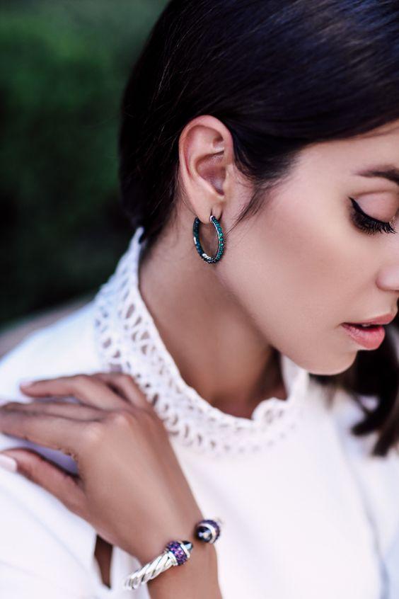 Khuyên tai đã trở thành món phụ kiện không thể thiếu trong phong cách thời trang hiện đại ngày nay, giúp khuôn mặt các quý cô thêm phần duyên dáng và yêu kiều. Những đôi khuyên kim loại nhỏ xinh sẽ phù hợp hơn cho phong cách ăn mặc ngày thường, mang đến vẻ xinh đẹp, nữ tính mà không quá phô trương. Bạn cũng có thể đeo khuyên lệch một bên để tạo sự đối lập thú vị hơn nữa.