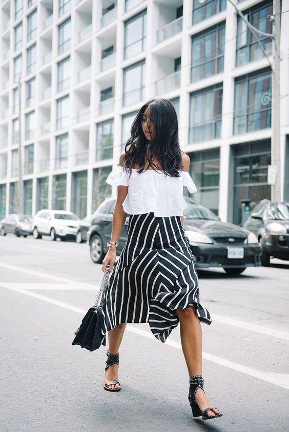 “Khi chưa có ý tưởng nào cho set đồ, tôi thường bắt đầu với một chiếc chân váy. Năm 20 tuổi là chân váy ngắn và bây giờ là dáng maxi.” Sara Byworth – Chuyên gia tư vấn truyền thông chọn mặc chân váy maxi với một chiếc áo phông trắng vào ban ngày và vẫn chiếc váy đó, bà kết hợp với áo cổ lọ và một đôi giày cao gót đế thô để có vẻ ngoài quyến rũ, thanh lịch hơn.