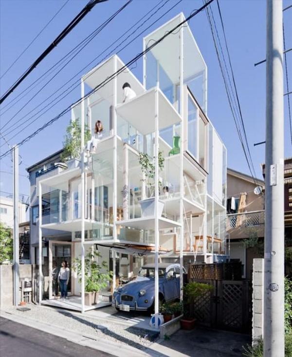 Thông thường những ngôi nhà đều được xây bằng tường bao kín. Một số ngôi nhà có phá cách bằng việc sử dụng kính ở mặt tiền. Nhưng ngôi nhà trong suốt như thế này thì có lẽ là độc nhất vô nhị. Bạn chỉ có thể bắt gặp nó trên đường phố Tokyo, Nhật Bản. Gọi là nhà trong suốt vì đứng ở góc độ nào bạn cũng sẽ thấy mọi thứ trong nhà.
